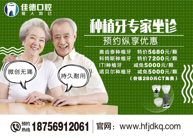温馨提示:种植牙对医生的技术和环境要求很高,为了保证种植的效果,一定要选择一家正规的口腔机构!在此推荐合肥佳德口腔--市医保定点单位,合肥本土十多年口腔机构!如果您还有其他的疑问可以点击【在线咨询】或拨打我们的爱牙热线:18756912061(微信),我们将竭诚为您服务。